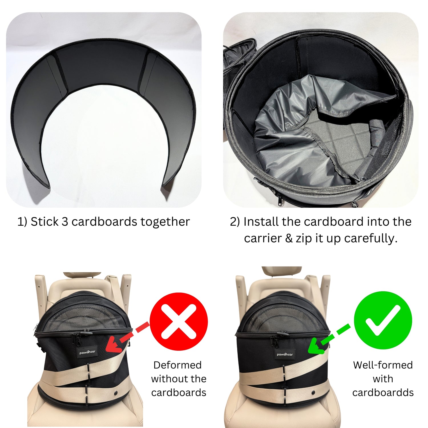 Make sure to install the three cardboard pieces inside the car seat for maximum protection.