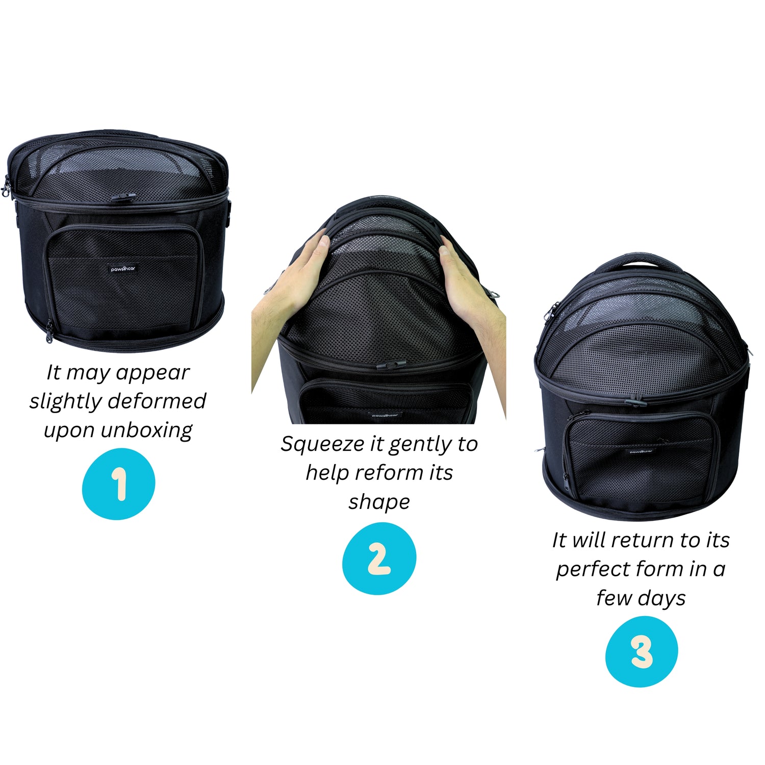 Gently squeeze the top to reform its shape upon unboxing, It will restore to perfect form in a few days.